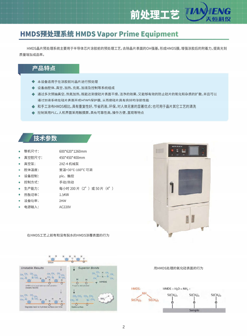 HMDS晶片預(yù)處理系統(tǒng)主要用于半導(dǎo)體芯片涂膠前的預(yù)處理工藝,去除晶片表面的OH強(qiáng)基,形成HMDS膜,增強(qiáng)涂膠后的附著力,提高光刻質(zhì)量增加成品率。